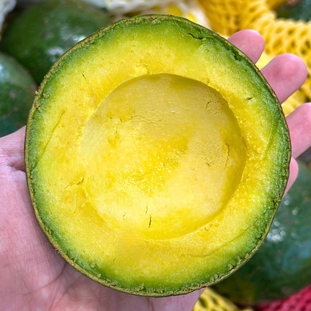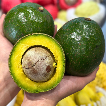 Bơ Booth có thịt màu vàng tươi, dẻo và thơm ngon hơn những loại bơ thông thường của Việt Nam